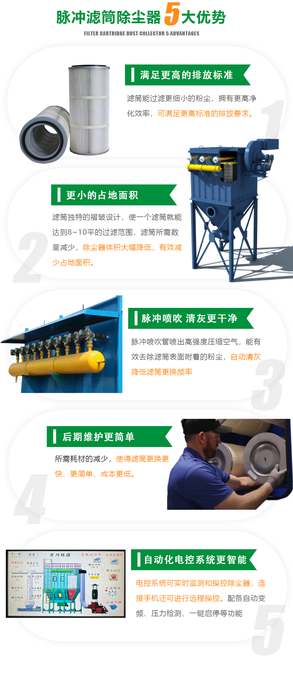 簡介:  脈沖濾筒除塵器,具有凈化效率高、外形尺寸小、過濾面積大、過濾效果好、壓力損失小、濾筒使用壽命長、安裝維修快捷方便、可連續使用等特點。廣泛適用于食品、制藥、飼料、冶金、建材、水泥、機械、電力、輕工行業的含塵氣體的凈化與粉塵物料的回收。  東莞高效脈沖濾筒除塵器廠家(一)  東莞高效脈沖濾筒除塵器的工作原理:  東莞高效脈沖濾筒除塵器具有體積小、效率高等優點。當含塵氣體由進風口進入除塵器后,...