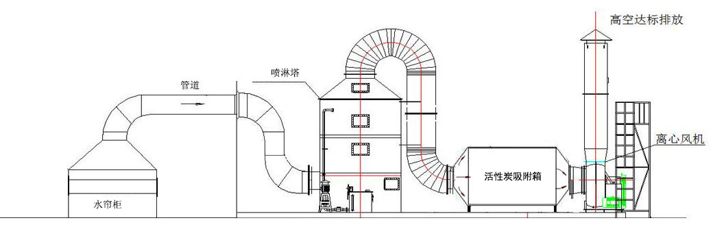 中等排放量,常見的過程有:收集-噴霧塔-活性炭吸附箱(或UV光解)-風扇-排放過程。