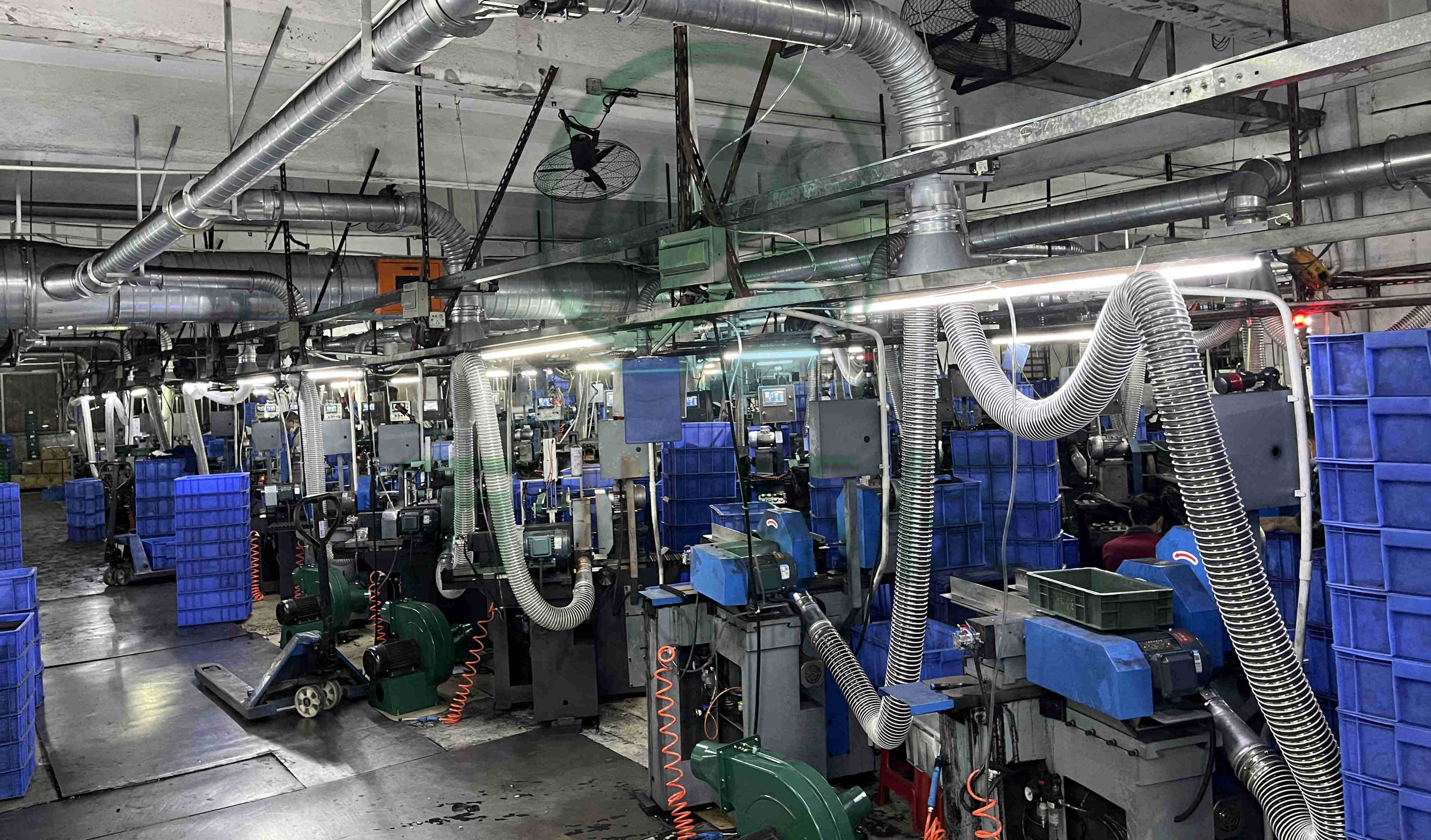 簡介:這是一家生產辦公設備的公司,車間配備60臺磨床,在生產時會產生大量粉塵,嚴重影響員工身體健康和工作環境,東莞萬川環保受邀為客戶設計一套防爆除塵系統,對車間60臺磨床進行集中除塵